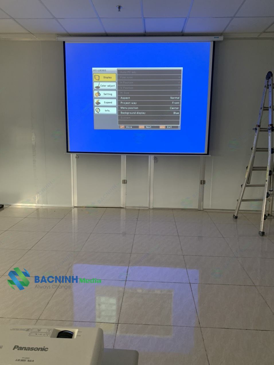 Công ty Bắc Ninh Media đã tiến hành lắp đặt trọn bộ máy chiếu Panasonic tại doanh nghiệp nhằm đáp ứng với nhu cầu của khách hàng cần tìm máy chiếu cho phòng họp lớn, trình chiếu tốt trong môi trường nhiều ánh sáng và giá thành phù hợp.